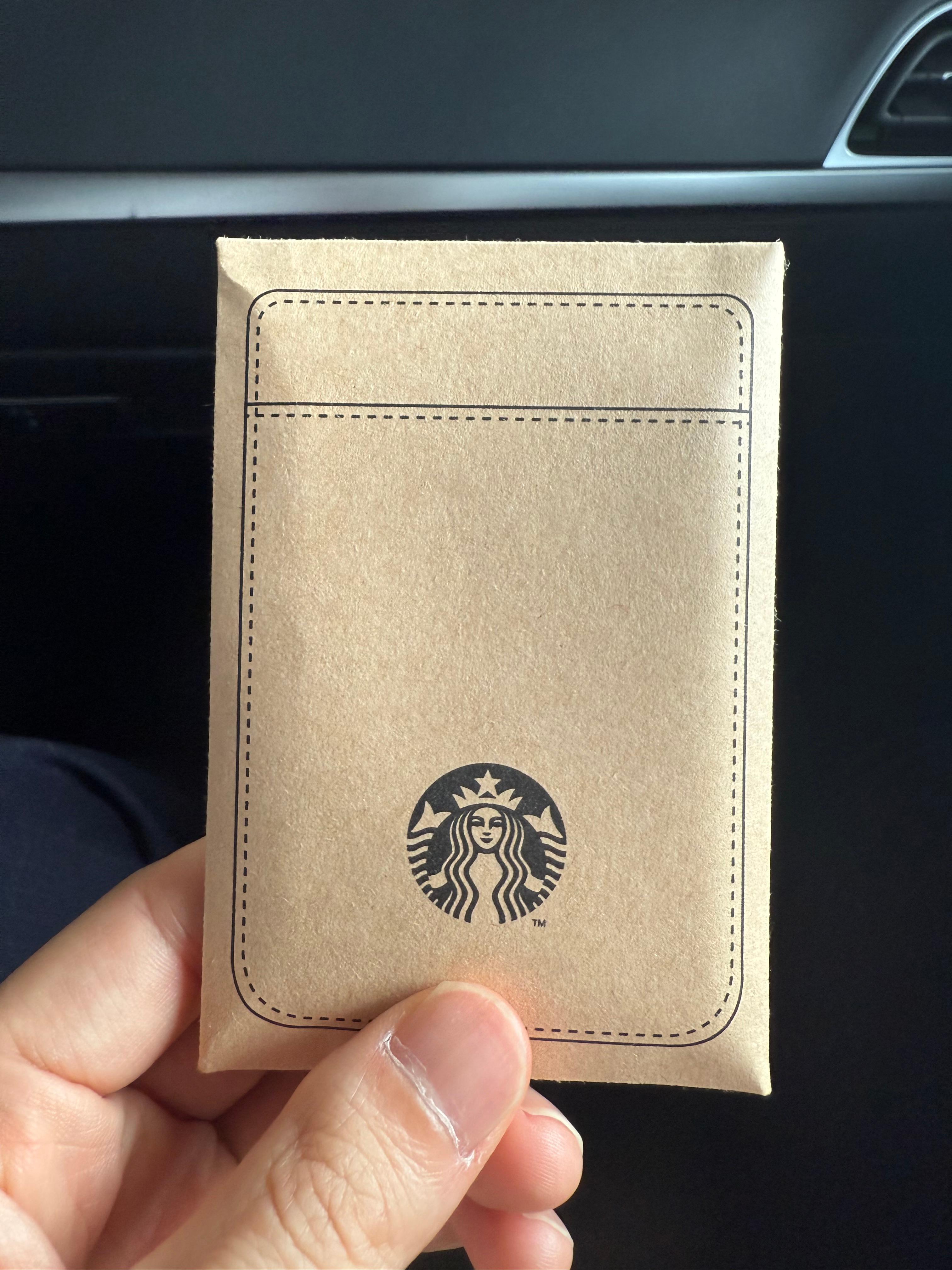 일단 열어보도록 하자. 아래와 같이 조그마한 카드 봉투 안에 스타벅스 맥세이프 카드 지갑이 들어 있다.