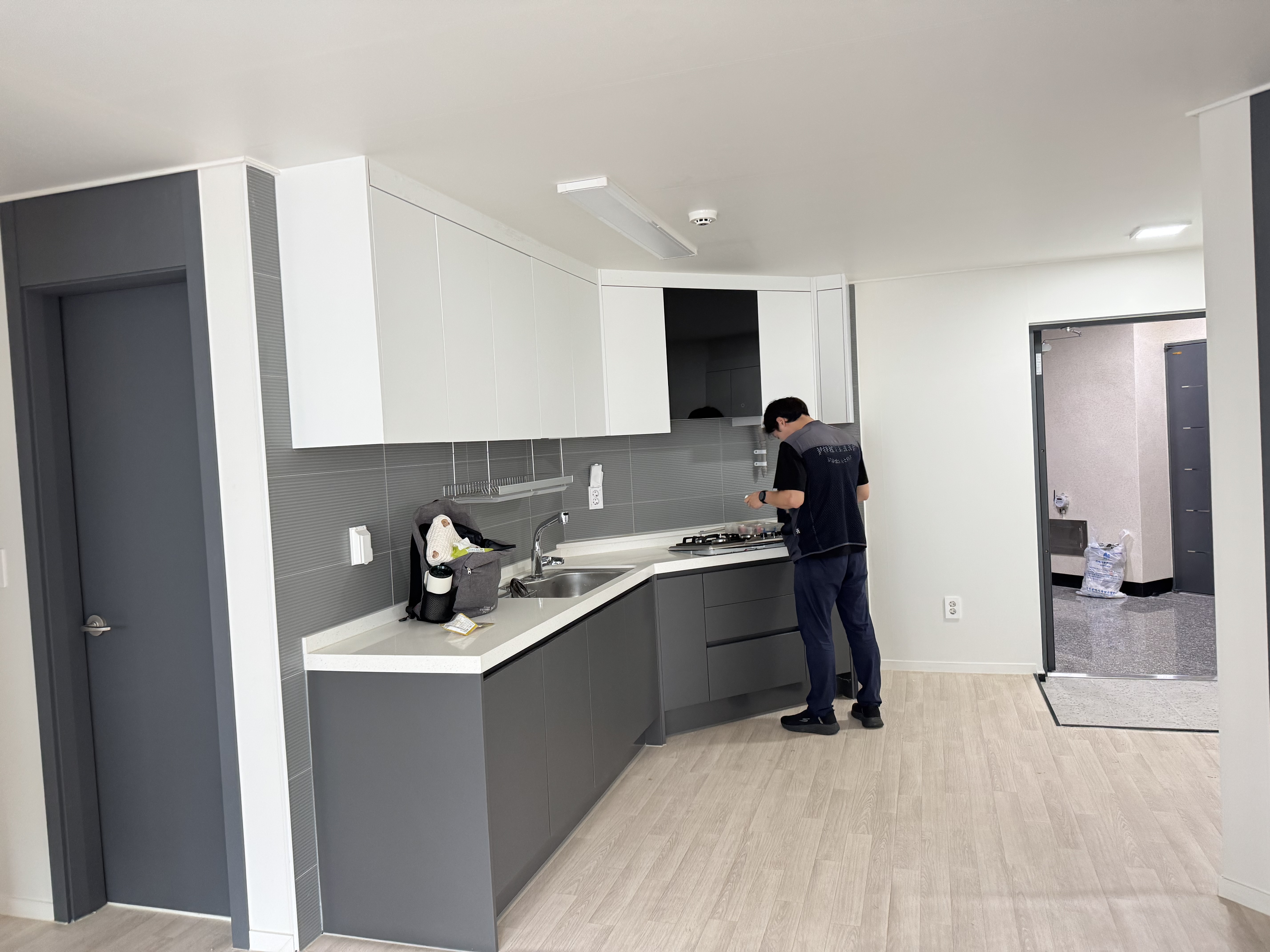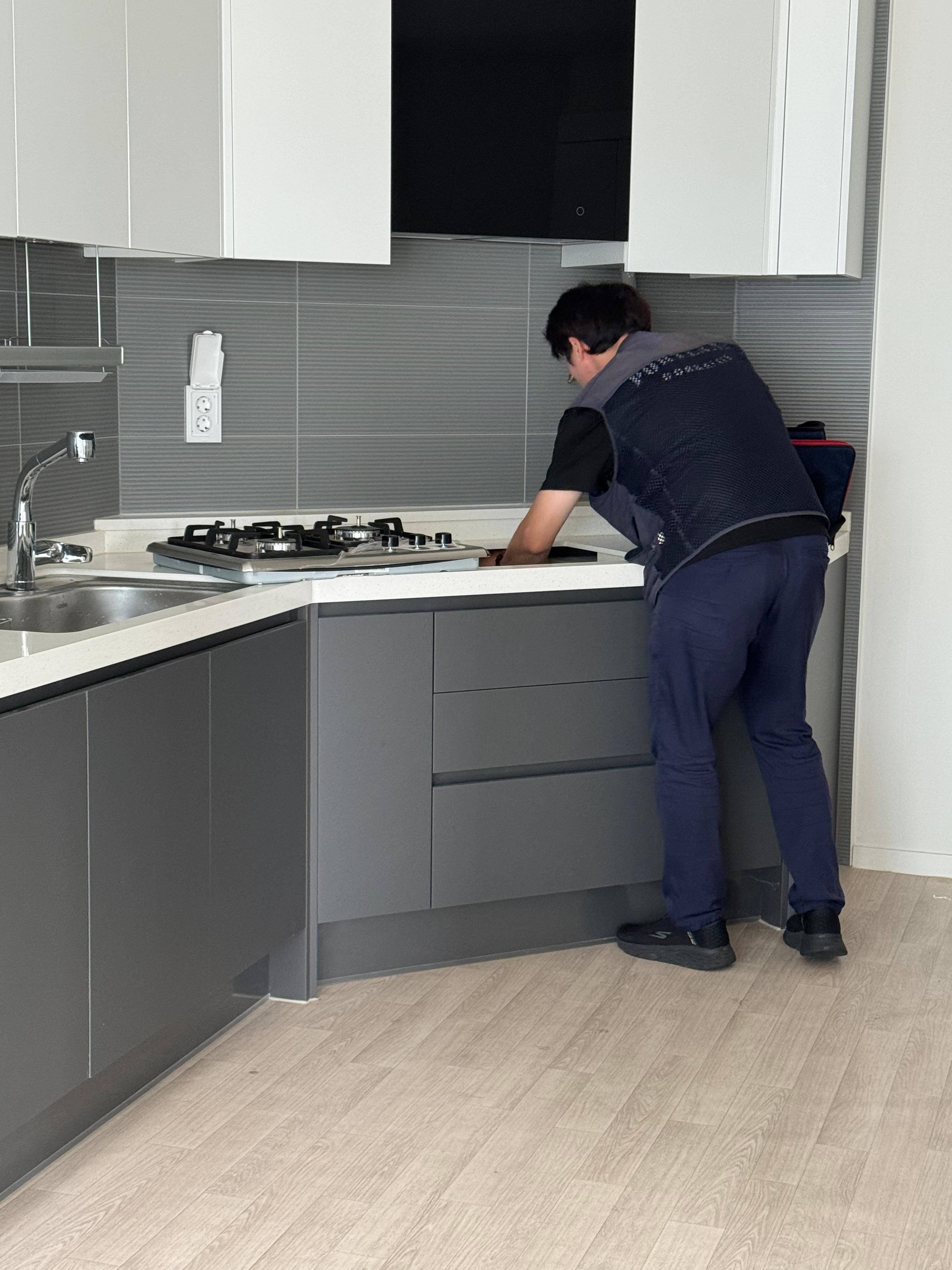 얼굴이 나오지 않게 찍었는데, 가스 연결해주시는게 너무 열심이라 감사했다. 가스레인지가 있는데, 가스관이 전혀 설치되어 있지 않아서 처음 왔을 때 당황했던 기억이 난다. 아마 우리가 이 집에 처음 입주하는 모양이었다. 지어진지는 2년 정도 되었다는데, 그동안 들어온 사람이 없었다고 들었다. 그래서 새 집이나 마찬가지였다.