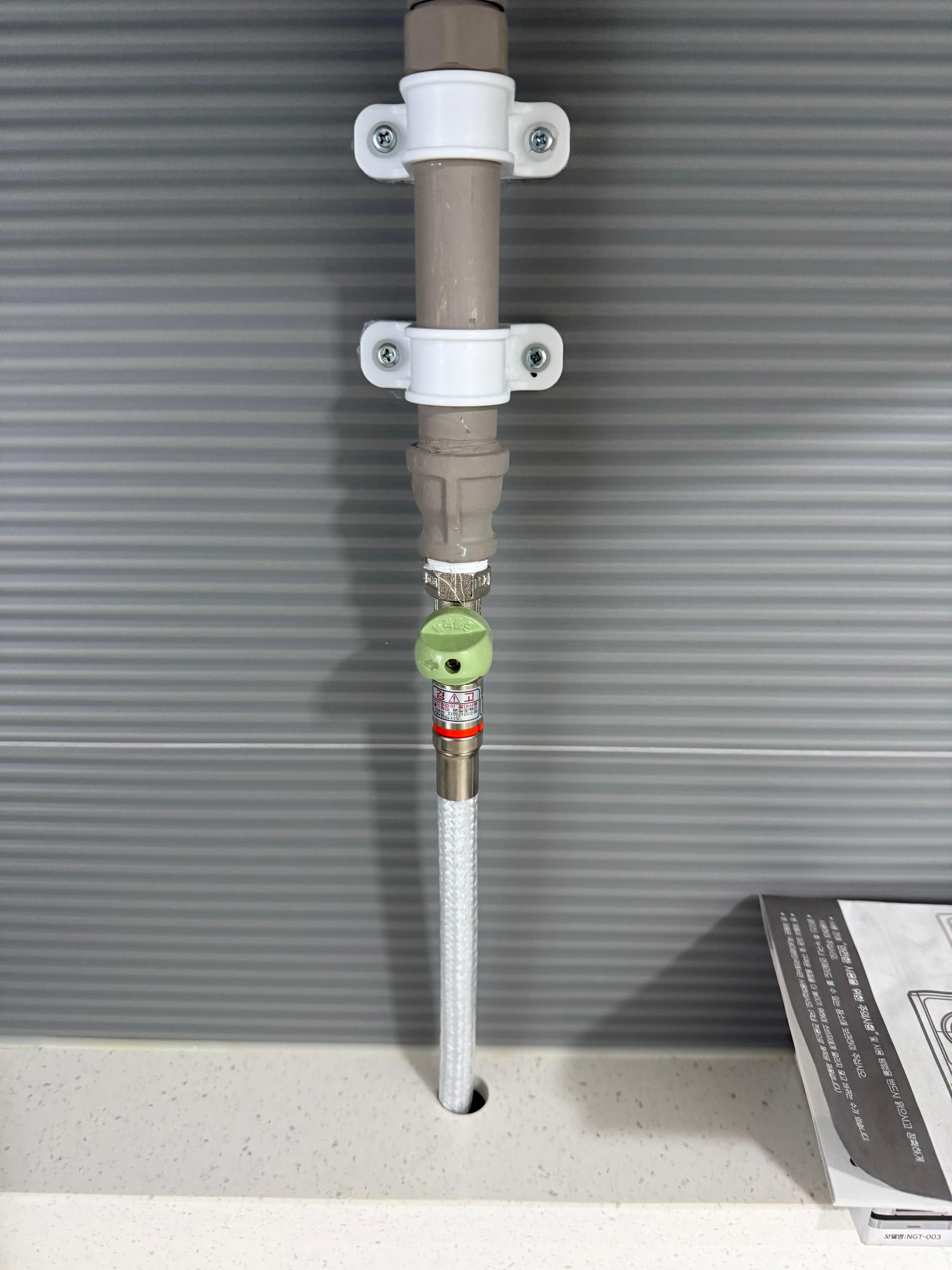 그리고 아래는 최종 모습이다. 위의 사진을 보면 알겠지만, 기둥(?)의 중간에 가스관이 안 보이는데, 아래는 잘 설치된 모습이다. 옛날의 주황색 관이 아니라서 신선했다.